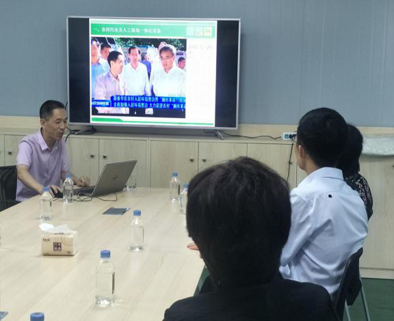 公司領(lǐng)導匯報水庫液位智能監(jiān)測系統(tǒng)和分散一體化污水設備及中風光發(fā)電的運用